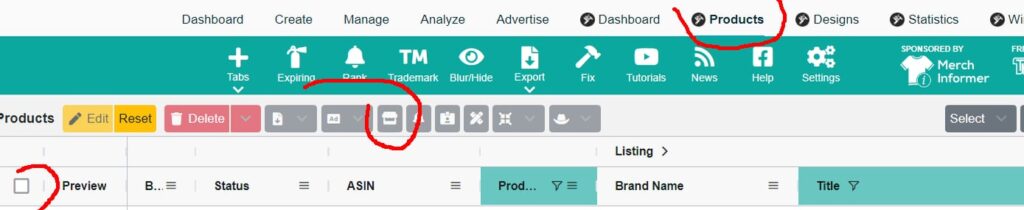 W Productorze przejdź do zakładki Products, wybierz tylko US tshirts i zaznacz pola wyboru po lewej przy koszulce, którą chcesz dodać do listy.